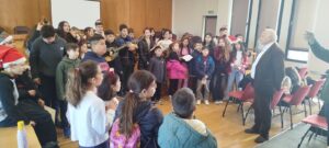 Τη Δευτέρα 22 Δεκεμβρίου 2025 οι μαθητές της Στ΄ τάξης του σχολείου μας επισκέφτηκαν το Δημαρχείο Χίου, την Περιφερειακή Ενότητα Χίου και το ΓΝΝ Χίου “ΣΚΥΛΙΤΣΕΙΟ” και έψαλλαν τα κάλαντα υπό τη διεύθυνση του εκπαιδευτικού Μουσικής του σχολείου, κ. Νίκου Μαχαιρά, στο Δήμαρχο Χίου, στον Αντιπεριφερειάρχη Χίου, σε κλινικές και στο Διοικητή του Νοσοκομείου Χίου και στη Δημόσια Κεντρική Ιστορική Βιβλιοθήκη “ΚΟΡΑΗΣ”.